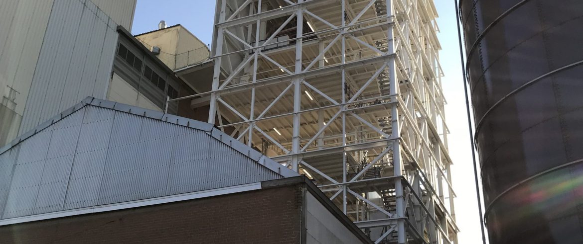 In Roeselare, België hebben wij door het bestaande dak uitkomende toren hetgeen bekleed met verticale sandwich panelen.